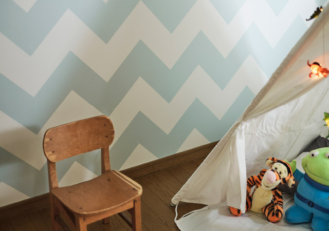 素材・・・ 壁紙:サンゲツRE-51356 / 床:サンゲツCRR103Aオーバーロック仕上げ 床面積・・・ 9㎡